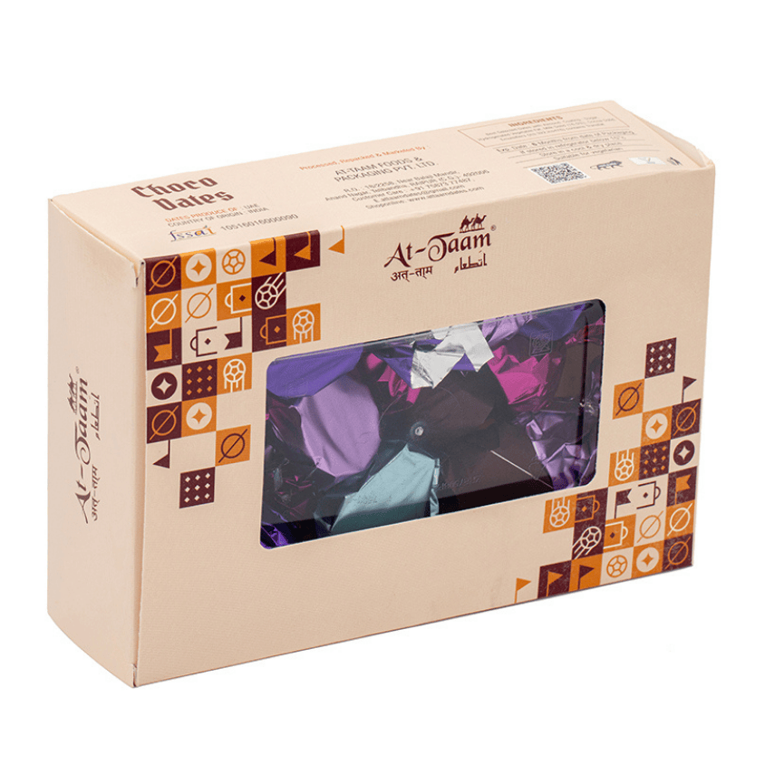 Chocodates is one the finest quality of Arabian sweet made with dates, almond and Chocolate. Each Chocodate is made of whole deseeded dates, stuffed with Roasted almonds and coated with Finest Milk Chocolate and Confection. Each Chocodate is individually wrapped with food grade Colorful Aluminium Foil to retain freshness and presentation.