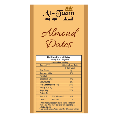 Premium Quality Dates stuffed with Whole roasted almonds.